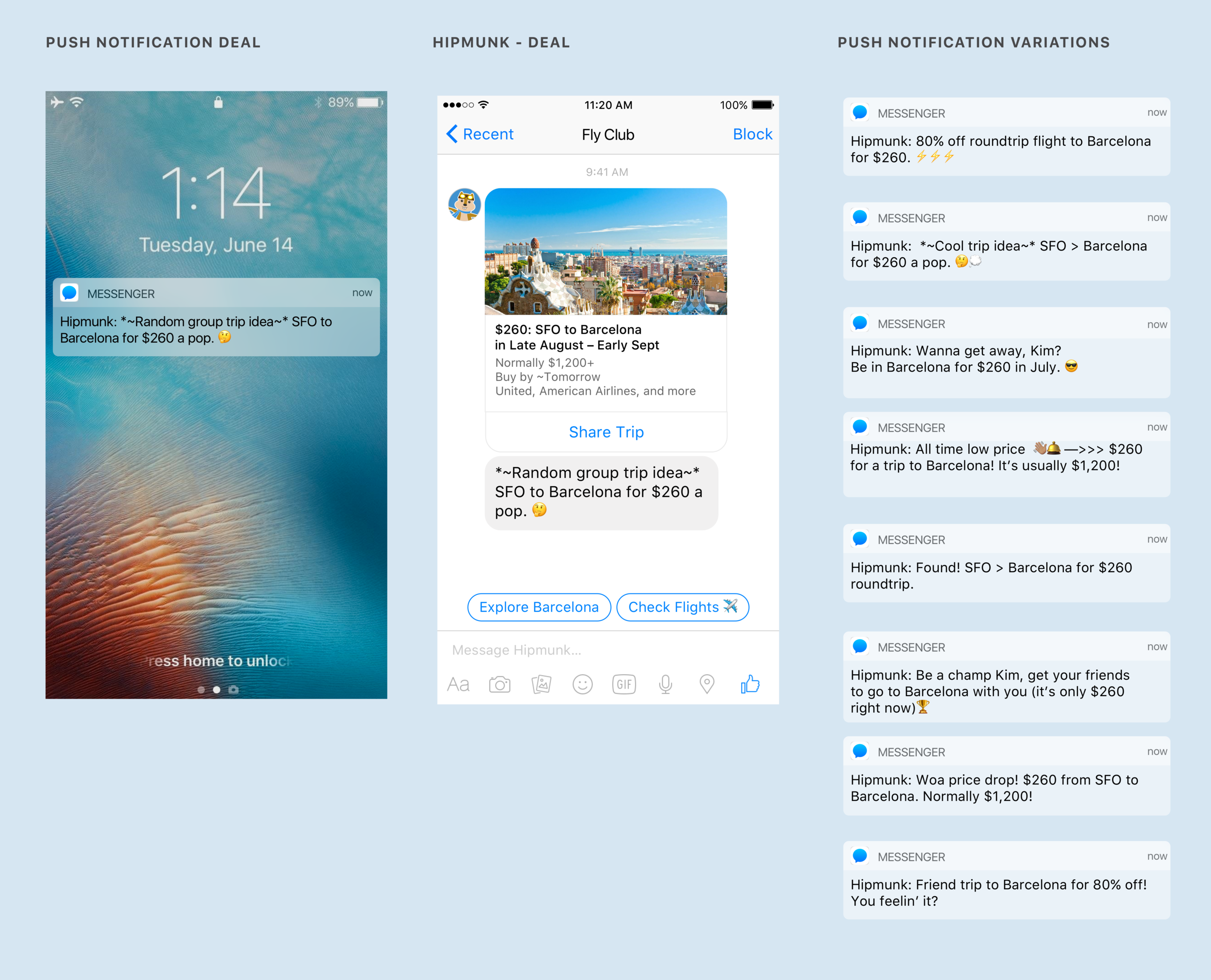 When they received a deal, they could view and book flight, right through messenger, or share it with friends.