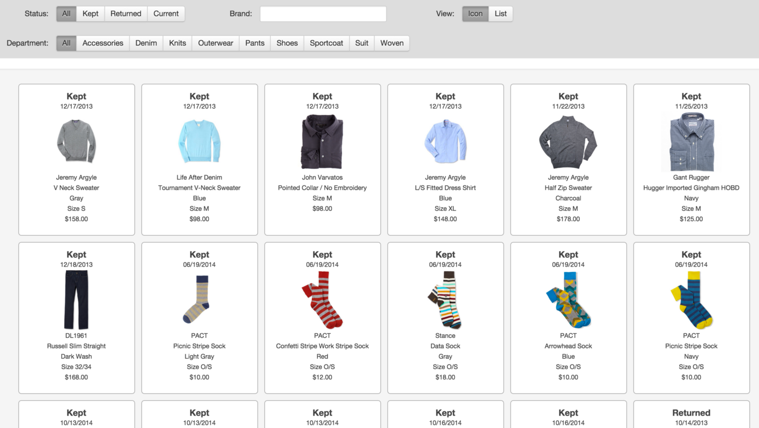 Another huge win with the multi-panel experience was that stylists could easily visualize which items would make a great addition to an existing wardrobe. Also, it was easier to avoid choosing items that members would dislike by seeing a member's past dislikes and new items side-by-side.